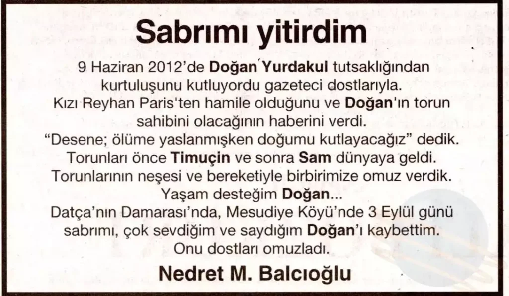 İzmir’den dönerken gazetede haberi okudum. Benden yedi yaş küçük Doğan da gitmiş.. O rezil Fetö kumpası ile aylarını içerde geçirenlerdendi Doğan da. Hani ‘Ergenekon’ olduğu iddia edilen düzmece dava.. Sağlık sebepleriyle tahliye edilmese, 15 Temmuz’a kadar yatanlar arasında olacaktı kesin.