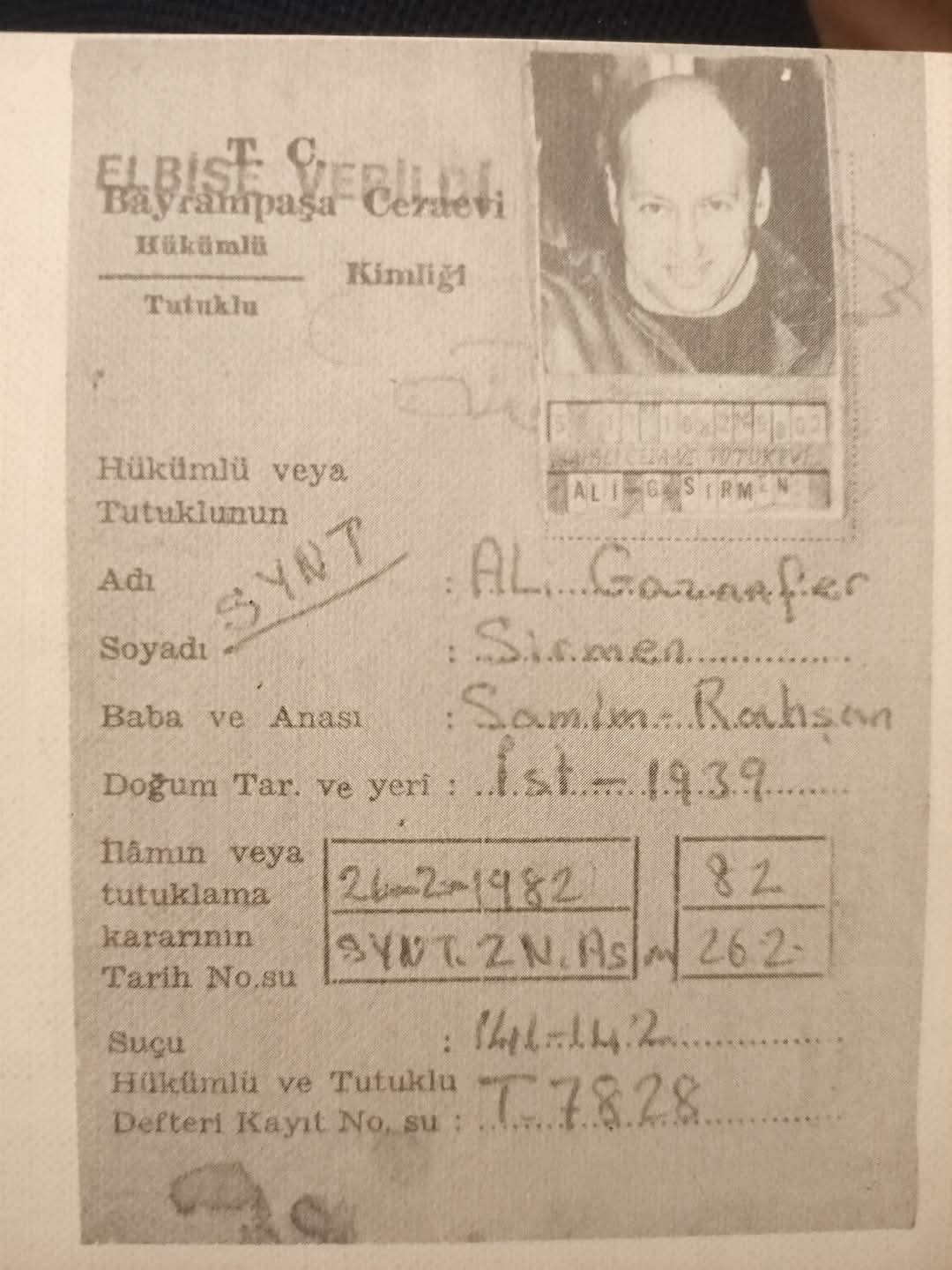 “Hapishane ve hücre yoldaşım, kardeşim, düşündaşım Ali Sirmen’i